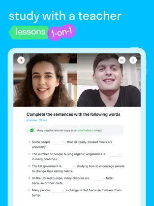 - Live Tutoring:Skyeng menyediakan akses ke sesi les langsung dengan guru bahasa Inggris yang berkualifikasi. Pengguna dapat menjadwalkan pelajaran individu atau bergabung dengan pelajaran kelompok untuk menerima umpan balik yang dipersonalisasi, bimbingan dan dukungan dari guru yang berpengalaman.