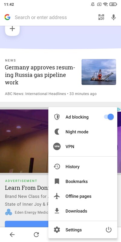 - ナイトモード: スクリーンの色温度を調整することで目の疲れを軽減するOperaのナイトモードで、夜間のウェブブラウジング中に目を保護します。