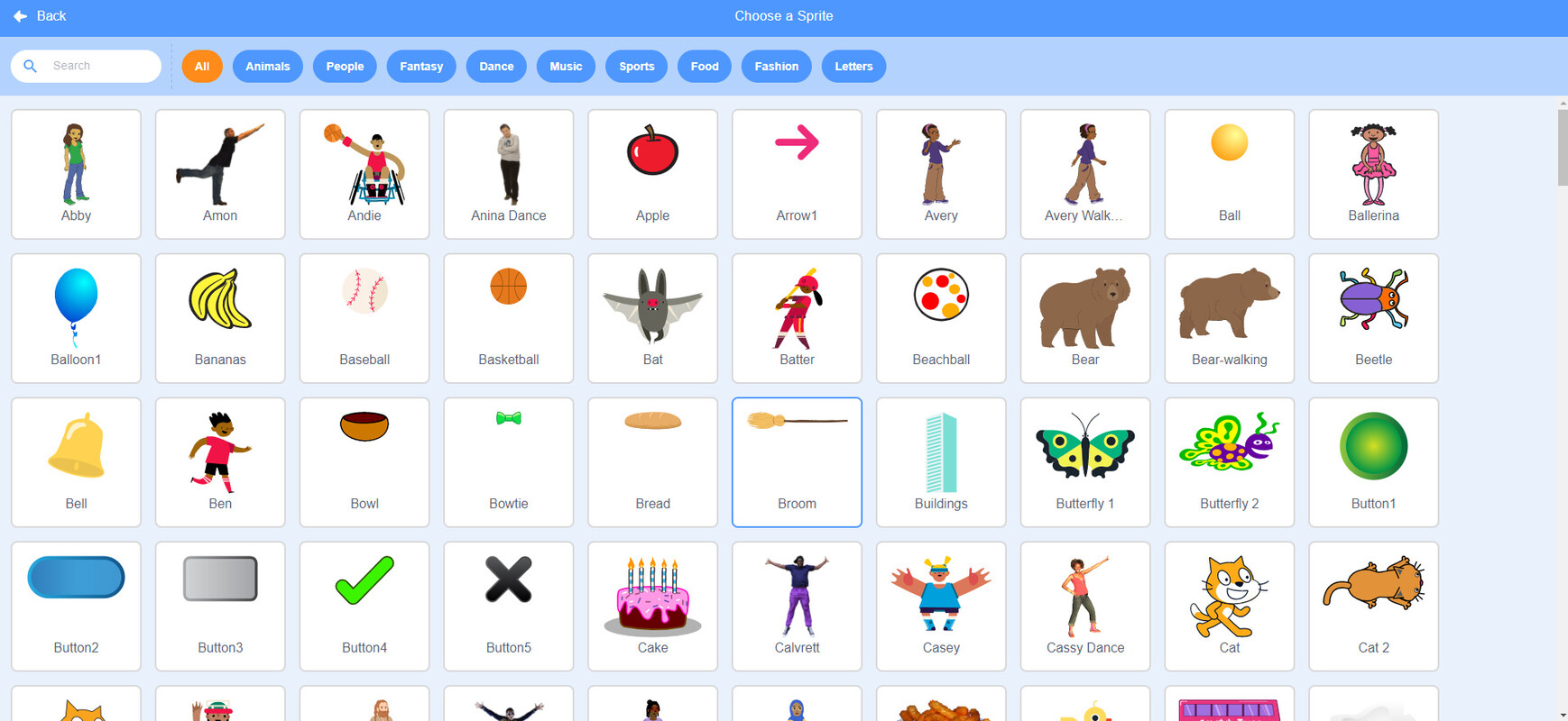 - 사용자는 다양한 스프라이트(캐릭터 또는 개체) 및 배경 라이브러리에서 선택할 수 있어 창의력을 키우고 독특한 프로젝트를 만들 수 있습니다.