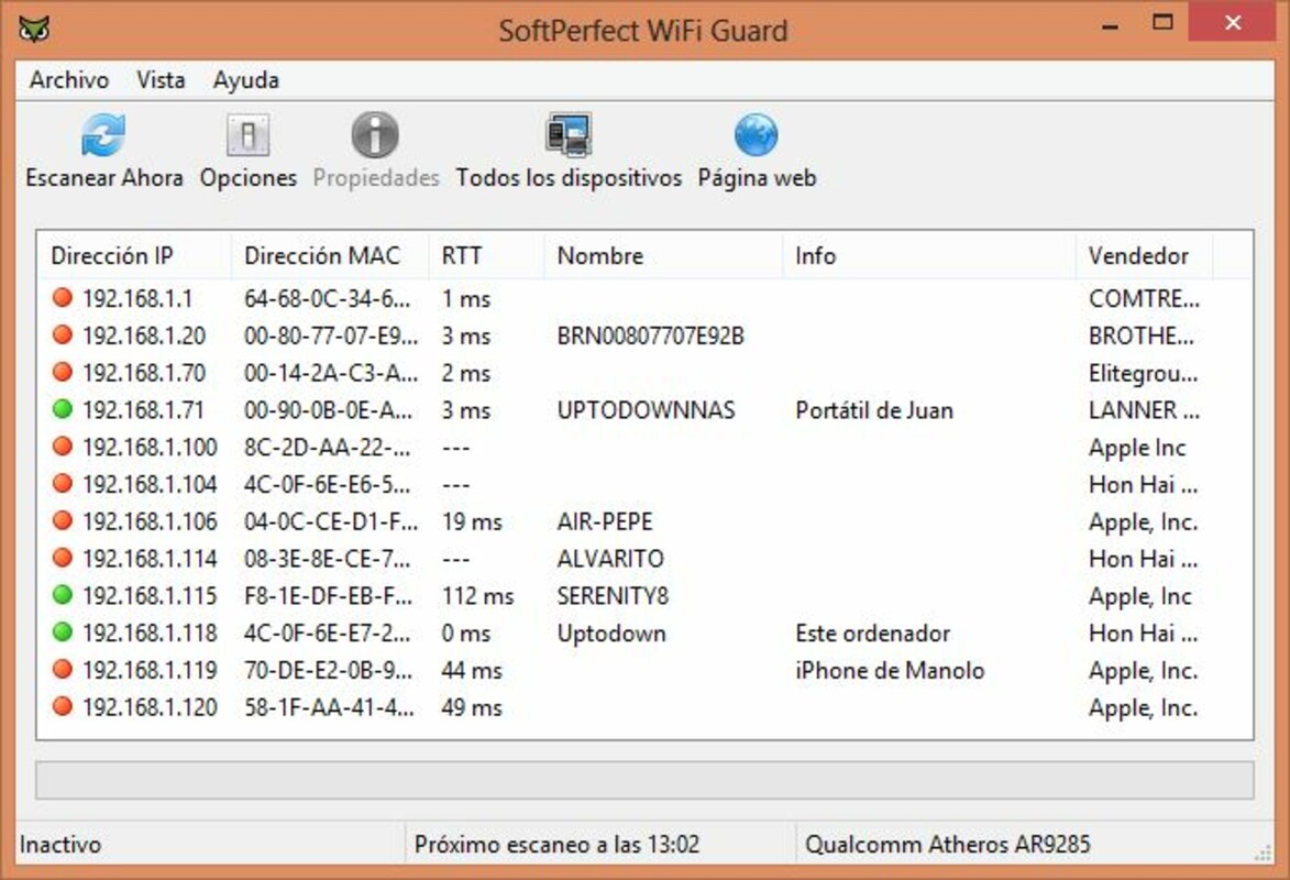 - 장치 식별: WIFI Guard는 네트워크 스캔을 수행하고 연결된 장치의 전체 목록을 이름, IP 주소 및 MAC 주소로 명확하게 식별하여 제공합니다.