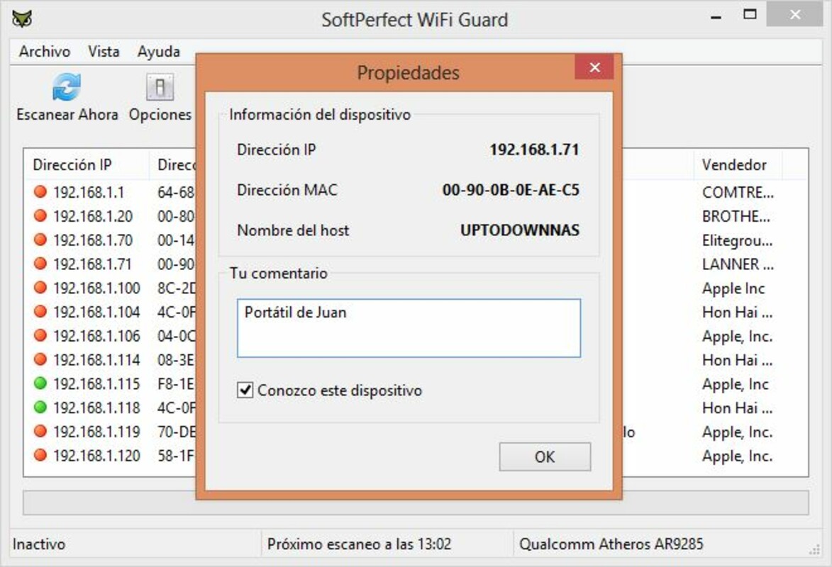 - 장치 식별: WIFI Guard는 네트워크를 스캔하여 연결된 장치의 포괄적인 목록을 이름, IP 주소 및 MAC 주소로 각각 식별하여 제공합니다.