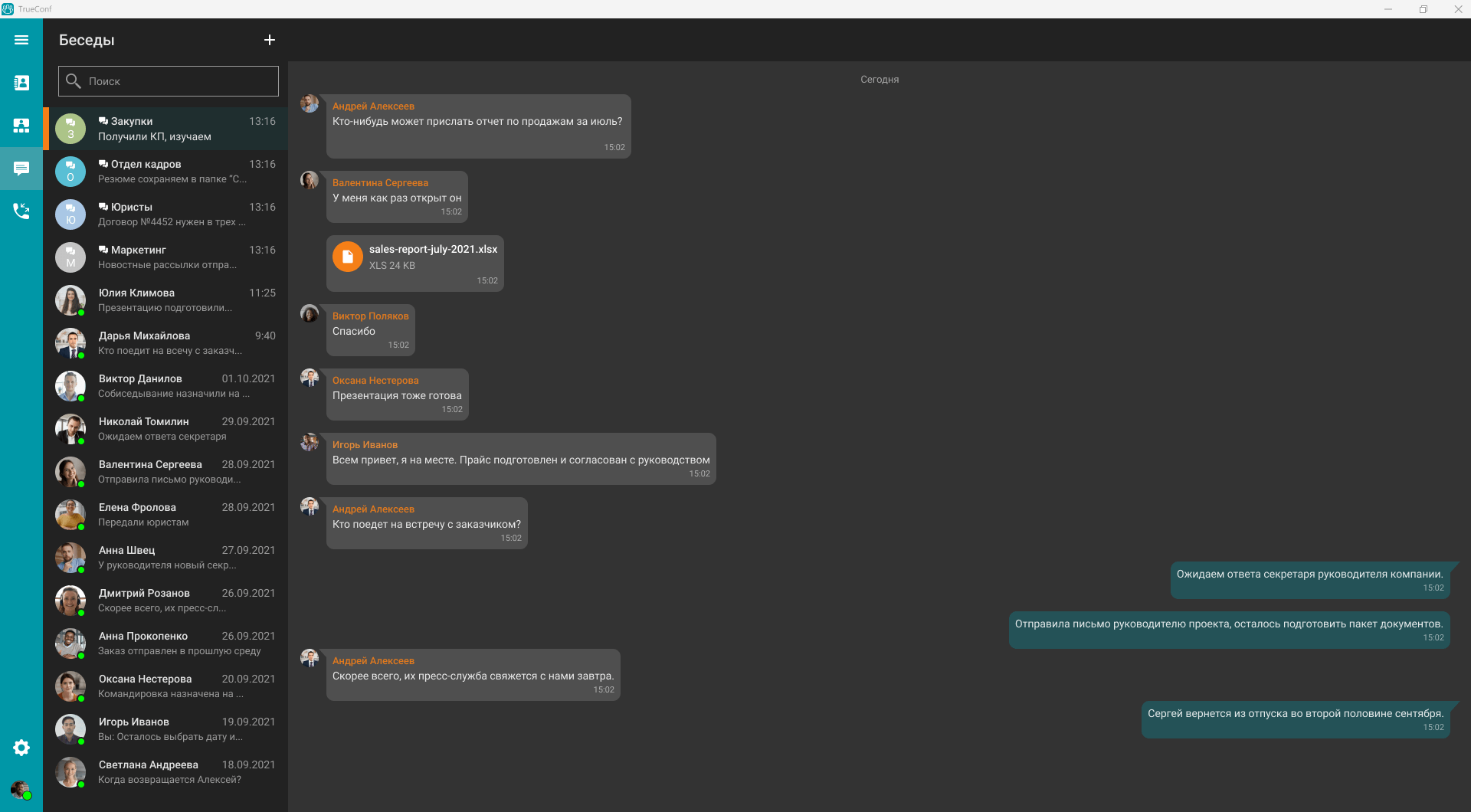 Programmas TrueConf Mac versija saglabā lietotājam draudzīgo saskarni un spēcīgo funkcionalitāti, ar ko šī programma ir pazīstama. Mac lietotāji var viegli pievienoties konferencēm, uzsākt zvanus, kopīgot ekrānus, strādāt ar dokumentiem un izmantot citas svarīgas TrueConf saskarnes funkcijas.