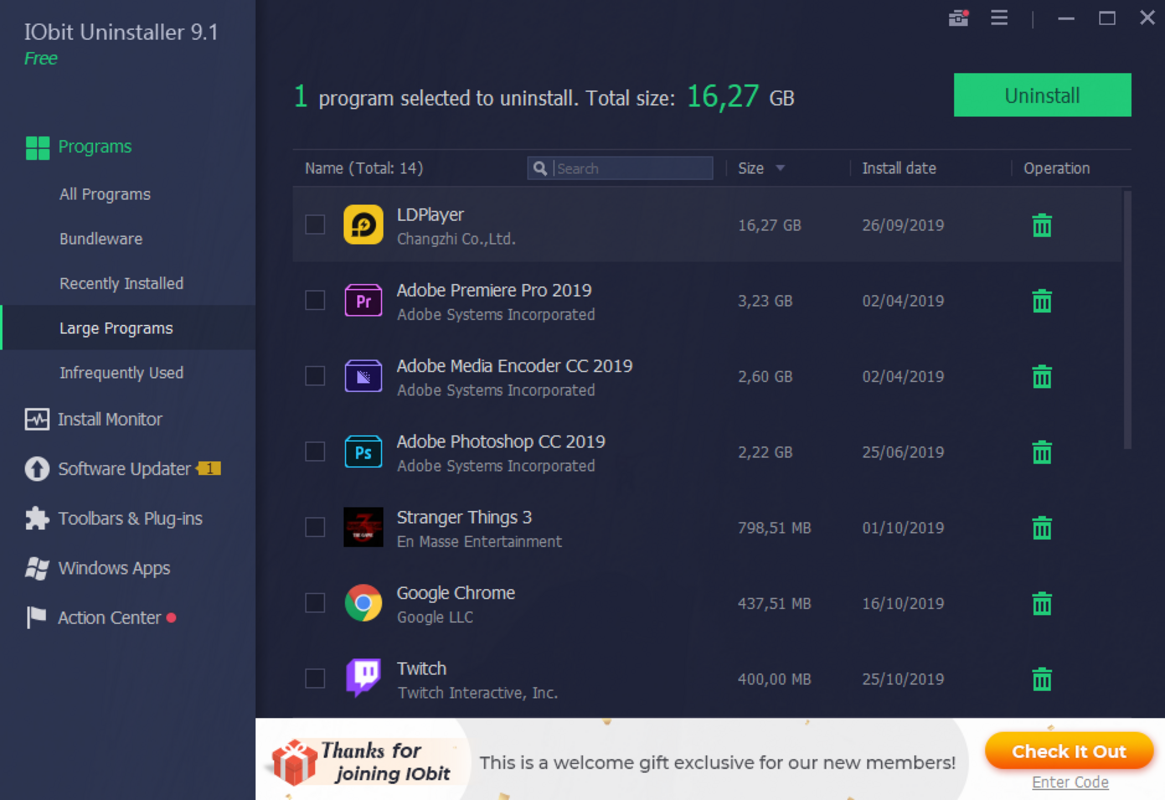 - Izcili atinstalē programmas: IObit Uninstaller nodrošina pilnīgu nevēlamo programmu noņemšanu, likvidējot atlikušos failus un reģistra ierakstus.