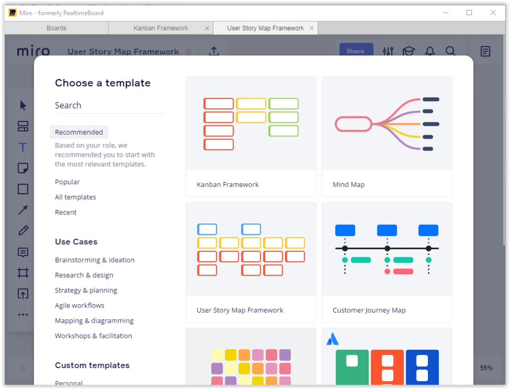 - Izvērsta veidņu bibliotēka: Miro piedāvā plašu veidņu bibliotēku dažādiem izmantošanas gadījumiem, tostarp veiklai plānošanai, dizaina domāšanai un projektu vadībai. Lietotāji var izvēlēties no plašā iepriekš izstrādāto veidņu klāsta vai izveidot savus veidņus, lai tie atbilstu viņu specifiskajām vajadzībām.