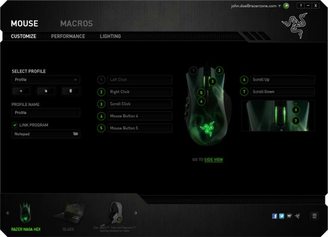 - Ir ierīču konfigurācija: Pielāgojiet katru Razer ierīci atbilstoši savām vēlmēm. Neatkarīgi no tā, vai tas ir peles jutīguma regulēšana vai tastatūras taustiņu piesaistes pielāgošana, Razer Synapse piedāvā lietotājam draudzīgu saskarni visaptverošai ierīces pielāgošanai.
