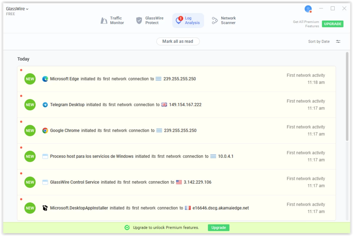 9. Kullanışlı Arayüz: GlassWire, her teknik seviyeden kullanıcının ağ verilerini kolayca gezinmesine ve anlamasına olanak tanıyan temiz ve kullanıcı dostu bir arayüze sahiptir. Uygulamanın tasarımı, işlevsellikten ödün vermeden kullanım kolaylığına odaklanır.