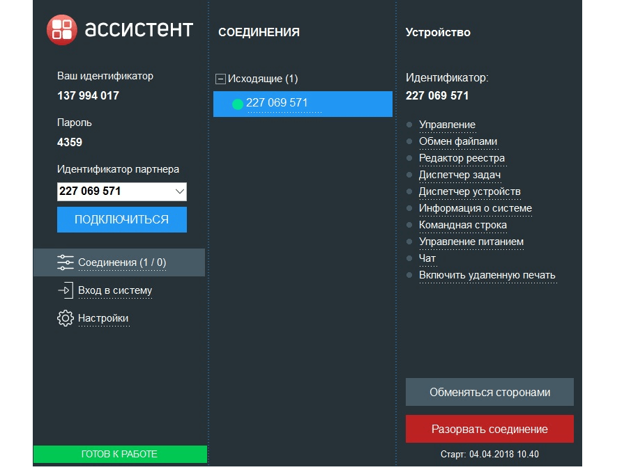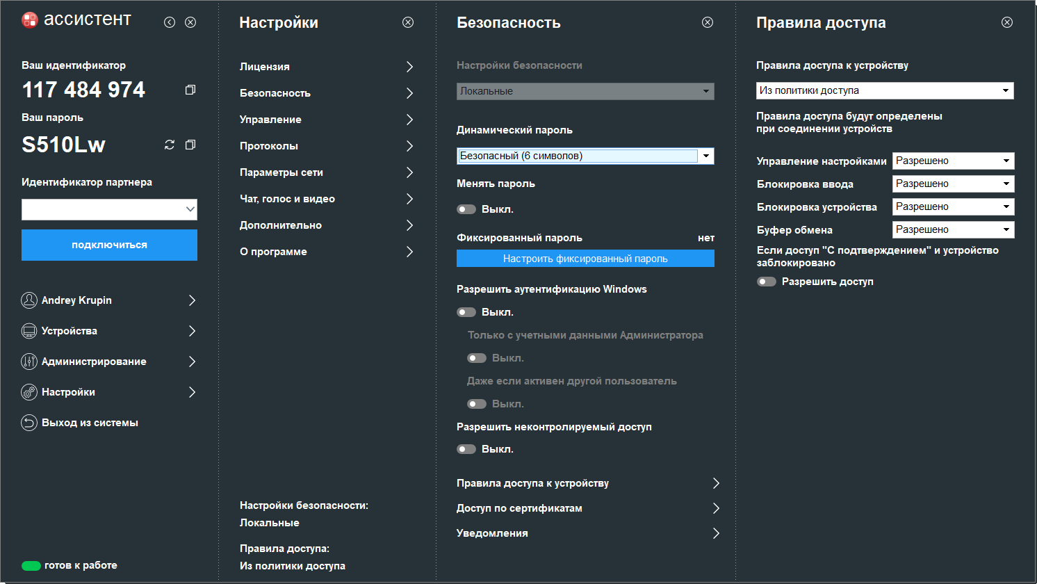ASSISTENT, Rus uzmanlar tarafından geliştirilen, hem yerel bir ağ üzerinden hem de İnternet üzerinden bilgisayarlara güvenli ve rahat uzaktan erişim sağlayan Windows için modern bir programdır. Güçlü işlevsellik ve basit arayüz kombinasyonu sayesinde, program BT uzmanları, sistem yöneticileri ve uzak çalışanlar için güvenilir bir araç haline gelir.