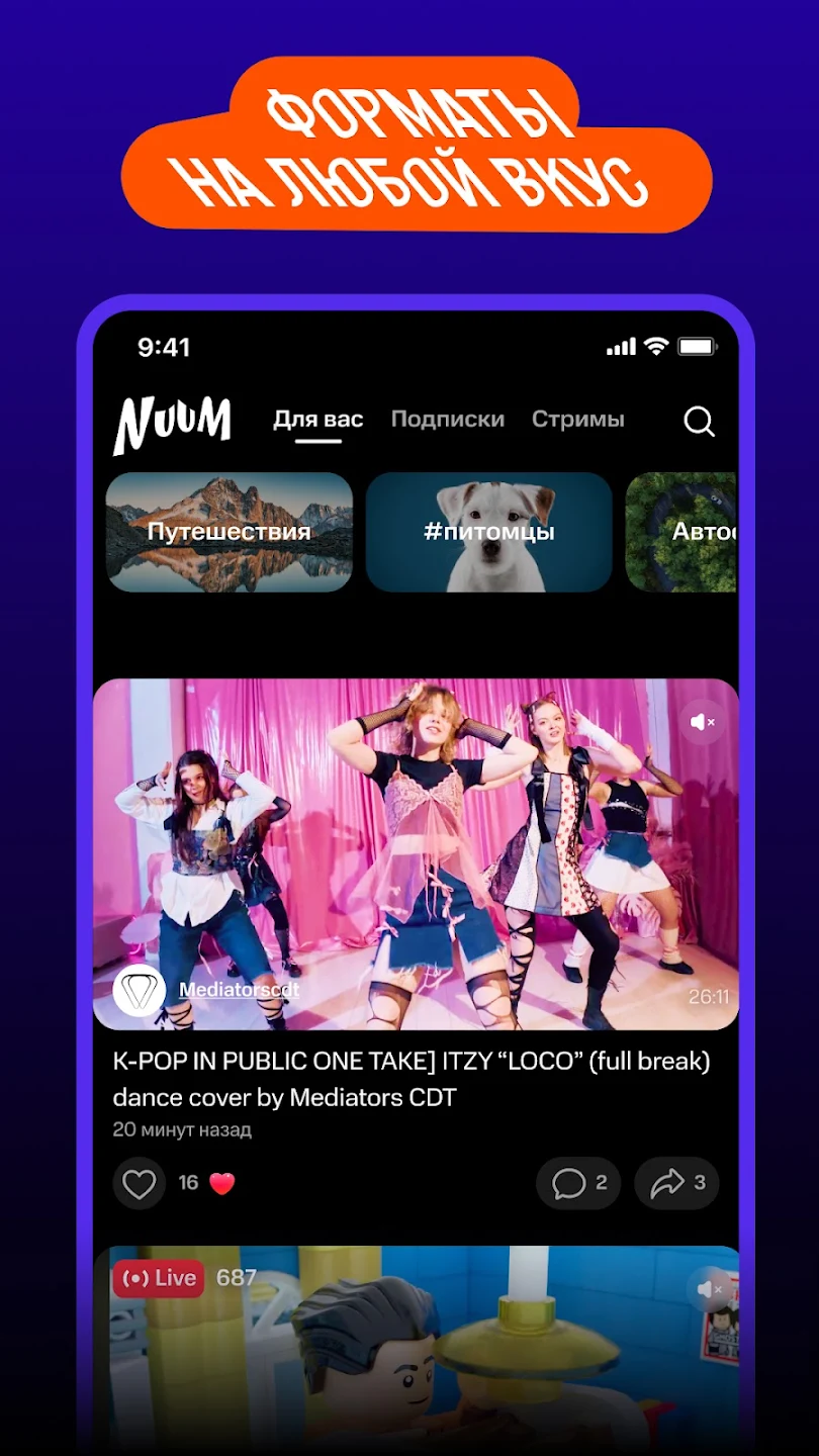 - Підтримка багатоформатного відео: NUUM дозволяє авторам завантажувати відео у горизонтальному, вертикальному та прямому форматах. Ця гнучкість задовольняє різні уподобання глядачів, гарантуючи, що ваш контент буде доступним і цікавим для всіх аудиторій.