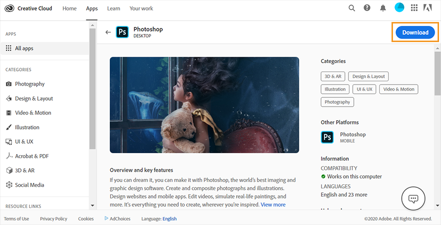 Скачати безкоштовно Photoshop для Windows офіційну версію можна на цій сторінці. Photoshop ця програма з'явилася в 1990 році. Її можна назвати однією з найстаріших програм для Windows. Звичайно, до нашого часу вона набула безліч змін і поліпшень. І на сьогоднішній день це одна з найкращих графічних програм.