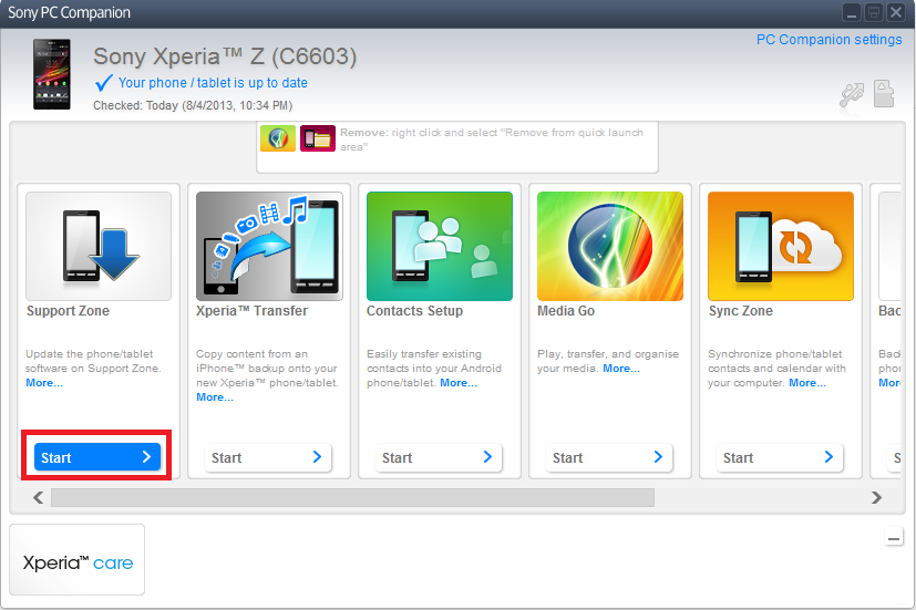 Після запуску програми можна оновлювати прошивку, але при підключенні телефону пристрій повинен бути увімкненим. Залишається лише запустити "Оновлення програмного забезпечення телефону або планшета". Sony PC Companion завантажить деякі файли для підготовки комп'ютера до оновлення програмного забезпечення. USB-кабель повинен бути підключений тільки до комп'ютера. Після підключення утиліта завантажить необхідну прошивку і завантажить її на телефон. Потім, за бажанням, можна переносити, переміщати, копіювати і видаляти файли. Для зручності користувачів були придумані вбудовані підказки, адже не всі знайомі з правильним використанням програми. Також можна увімкнути сповіщення і налаштувати автооновлення.